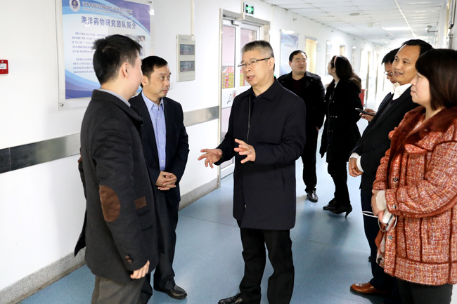 11月26日,省科技厅副巡视员景茂,省科技厅条件处副处长李汉中、尤琛辉博士一行视察我校海洋科技创新平台建设工作。校党委书记王自力、副校长许兴友陪同视察。景茂一行重点视察了我校江苏省海洋生物资源与环境重点实验室、海洋工程技术研究中心等重大海洋科技创新平台。