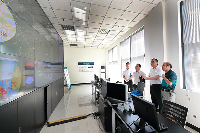 会谈结束后,沈毅一行在陈先宏的陪同下,先后考察了海洋经济与文化研究中心、工训中心、海洋工程技术研究中心、海洋智能装备研究院和海洋生命与水产学院。在工训中心虚拟现实(VR)教学中心,沈毅饶有兴趣地戴上了3D眼镜,体验直观、立体、逼真的虚拟模型效果;在海洋智能装备研究院,沈毅听取了相关负责人对无人艇、水下机器人在环保监测、水下测量等领域应用的讲解。