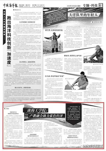 在建设海洋强国、海洋强省,全面实施“一带一路”倡议的进程中,淮海工学院紧紧抓住发展机遇,充分发挥人才、科技、资源优势,切实加强产教融合,坚持走政产学研合作之路,着力服务海洋产业和海洋经济发展。
