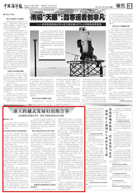 近日,淮海工学院举办一系列活动,深入研讨智慧海洋发展趋势,积极推进江苏海洋大学筹建工作,该校海洋工程技术研究中心日前正式落成。