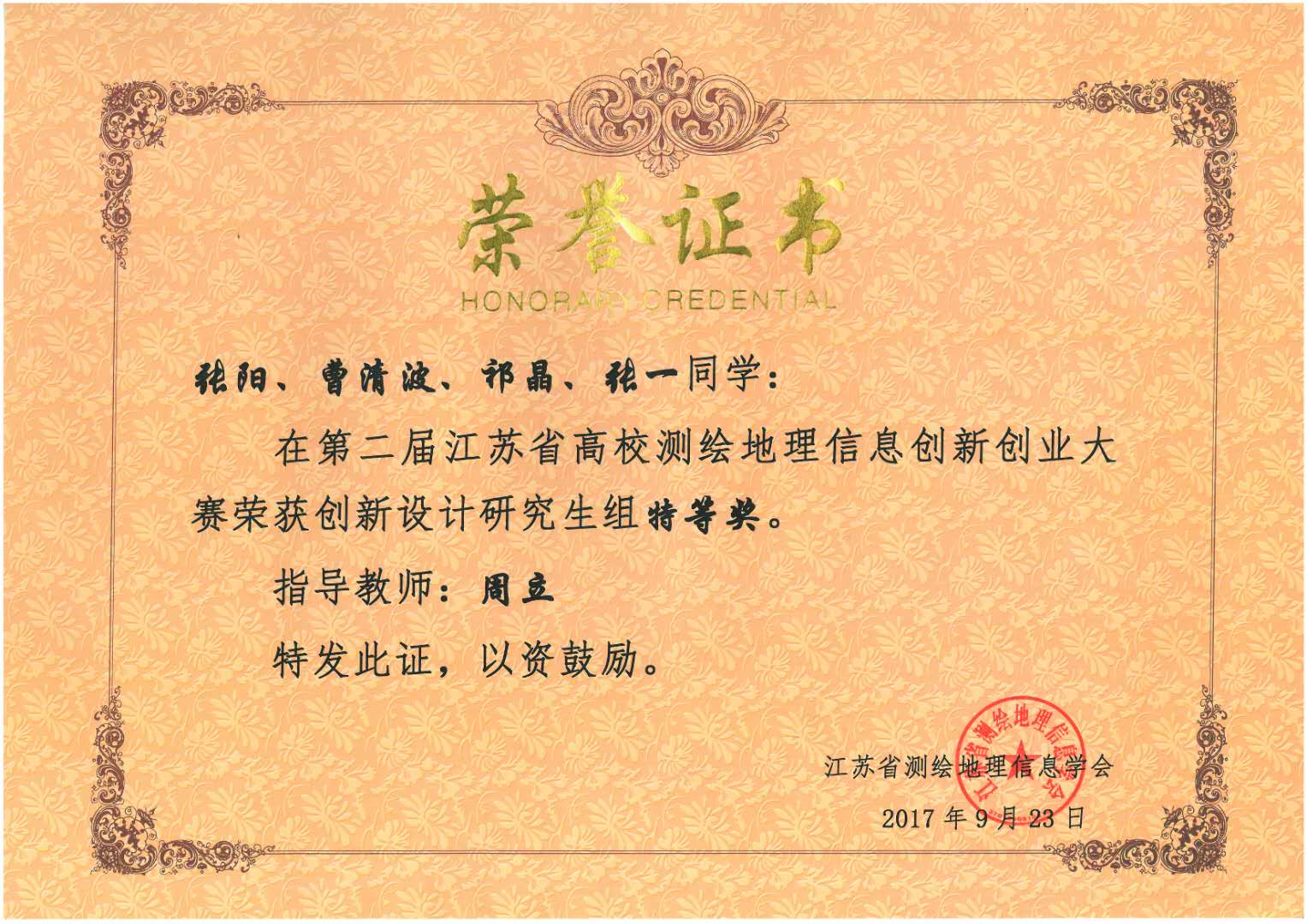 第一届江苏省高校测绘本科生优秀毕业论文奖 |